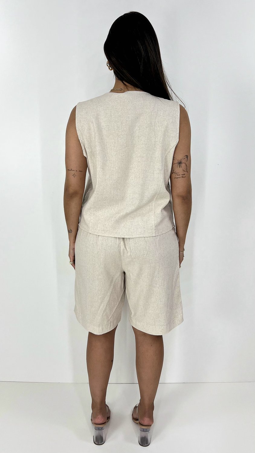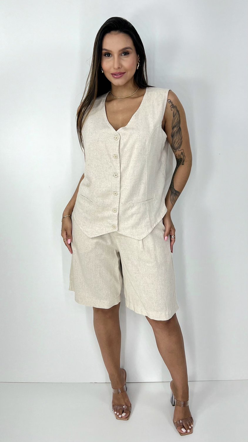 Conjunto Feminino Colete e Bermuda em Linho Cor Cru