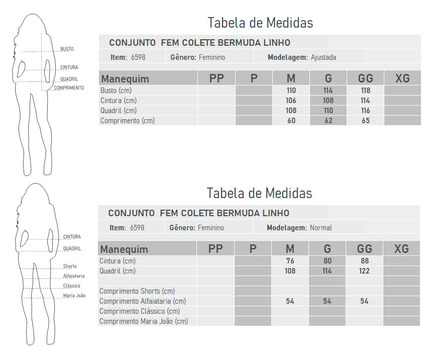 Item: Conjunto feminino em linho, colete com recortes nas laterais, botões em acrílico, decote V e bolsos fake, bermuda modelagem mais comprida, elástico na parte de trás do cós, botões e zíper na parte da frente.